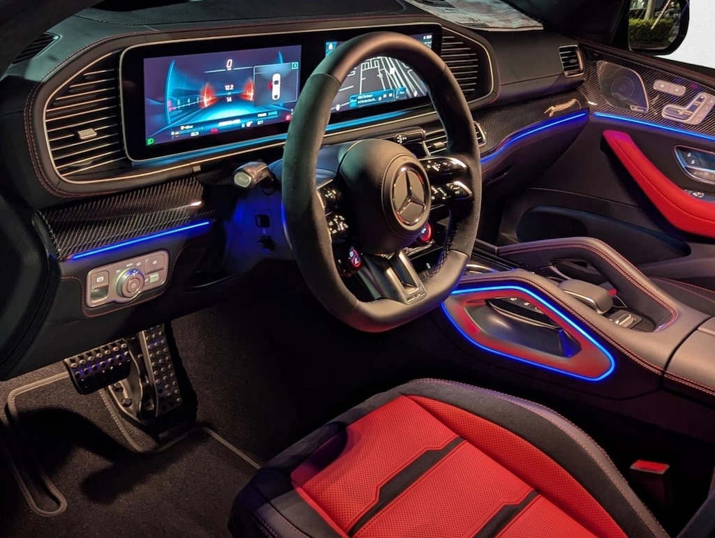 Wheels: 22" Amg ® Cross-Spoke Matte Black Forged,Amg ® Carbon Fiber Trim,Amg ® Night Package,Panoramic Roof,Leather Seats,Navigation System,Black Wheel Locking Bolts,Keyless Start,Rear Spoiler,Heads-Up Display,First Aid Kit,Cooled Front Seat(S),Cirrus Silver Metallic,Omission Of Color Seatbelts,Red Pepper/Black; Exclusive Nappa Leather Upholstery