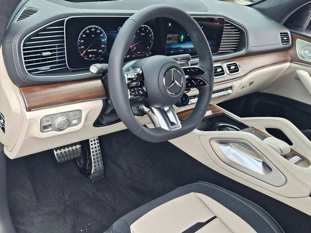 Wheels: 22" Amg ® Multi-Spoke; Matte Black,Amg ® Night Package,Panoramic Roof,Electric Second-Row Sunshades,Leather Seats,Navigation System,3rd Row Seat,Wheel Locking Bolts,Lane Keeping Assist,Keyless Start,Rear Spoiler,Heads-Up Display,First Aid Kit,Cooled Front Seat(S),6-Seat Configuration,Amg ® High-Performance Brakes W/Red Calipers,Macchiato Beige/Black; Exclusive Nappa Leather Upholstery,Natural Grain Brown Walnut Wood Trim,Polar White